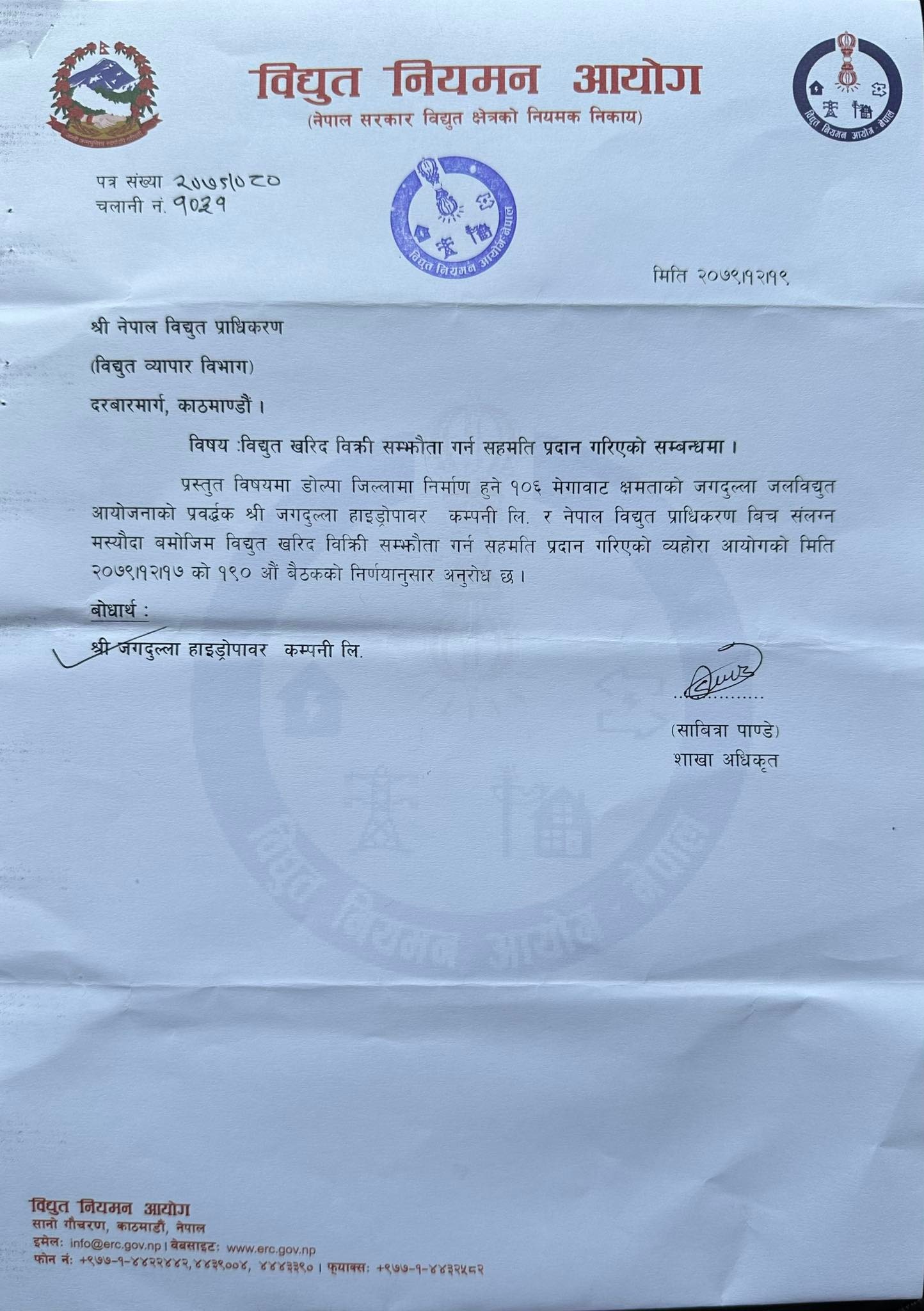 - विद्युत खरिद बिक्री सम्झौता गर्न सहमति प्रदान गरिएको सम्बन्धमा