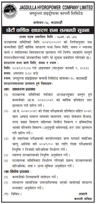- छैटौँ वार्षिक साधारण सभा सम्बन्धी सूचना