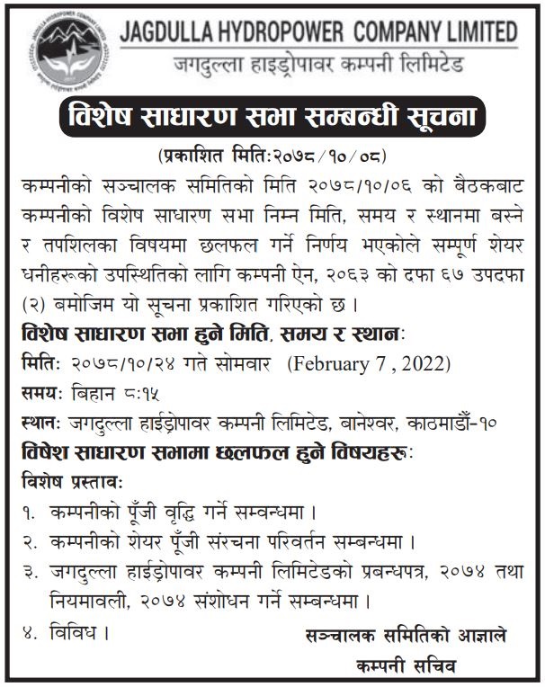 - विशेष साधारण सभा सम्बन्धी सूचना