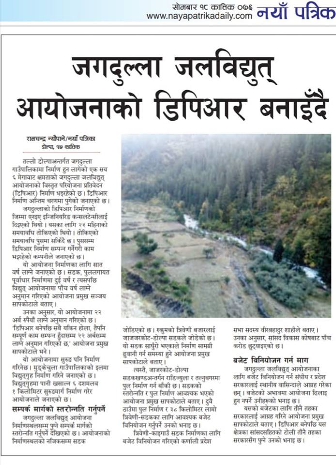 - जगदुल्ला जलविद्युत आयोजनाको डिपिआर बनाइँदै